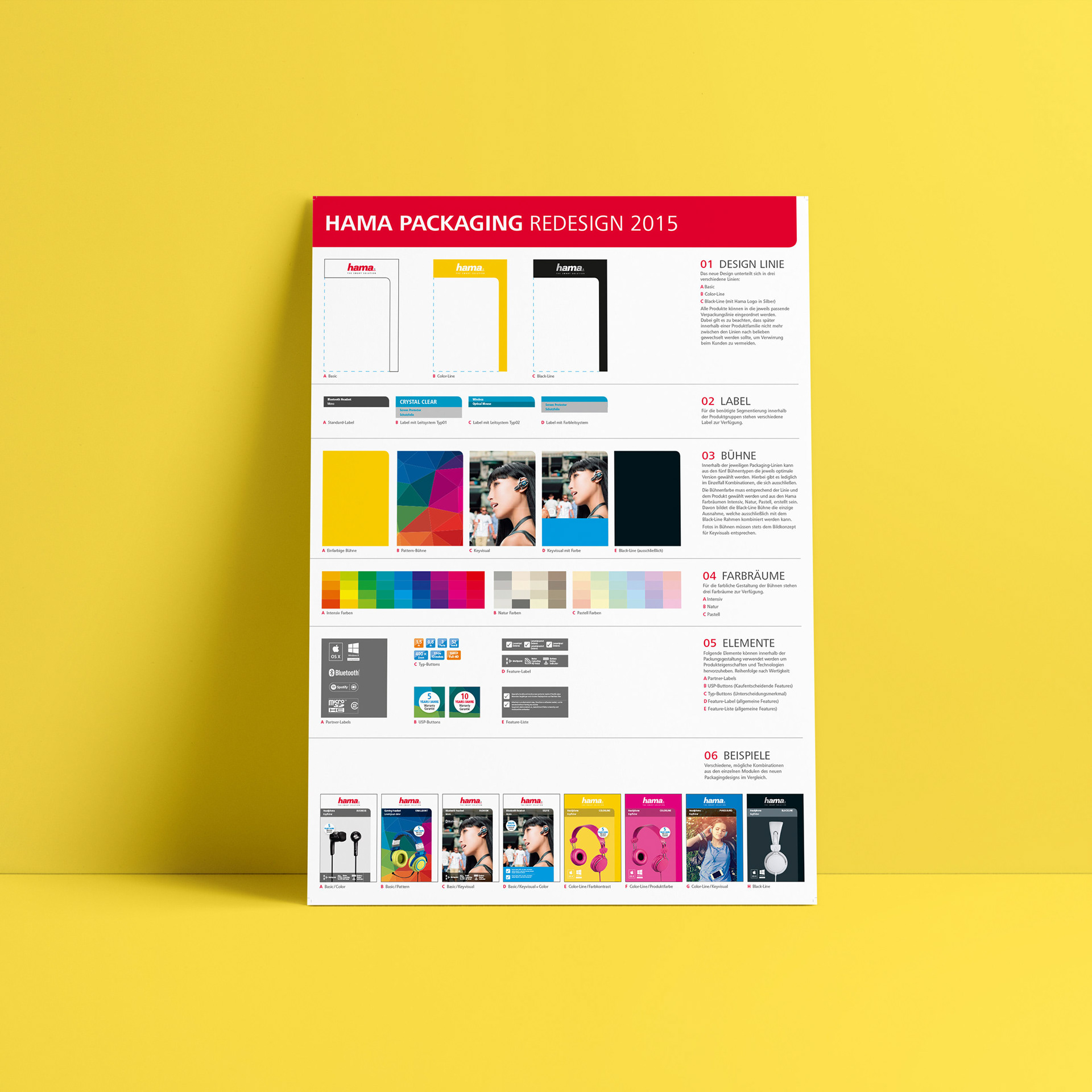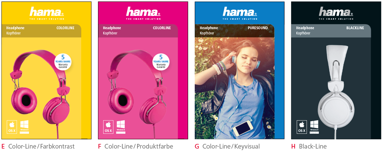 Das Angebot — über 18.000 Produkte — erfordert einen klaren Auftritt im Verpackungsdesign, das den Kunden am Point of Sale hilft, sich schnell zu orientieren. Gleichzeitig ist Hama auch eine emotionale Marke, die sich Kunden und Mitarbeitern freundlich und lebendig präsentiert.